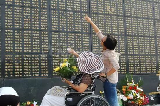 图为唐山大地震幸存者为逝去的亲人献花。中新社发刘璐 摄