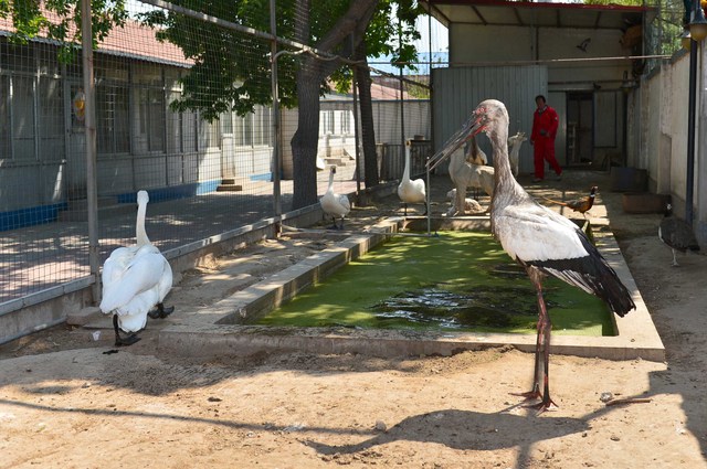 我区野生动物保护协会积极开展湿地鸟类的保护工作,自2006年成立以来,救助国家一级保护动物——东方白鹳4只。该协会在热心野生动物保护的奥东公司董事长罗志清的支持下,设立了野生动物救助站,有专人照料好心人送来的受伤的野生动物。图为生活在奥东救助站的白鹳和大小天鹅等。