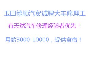 玉田德顺汽贸陕汽服务站诚聘修理工